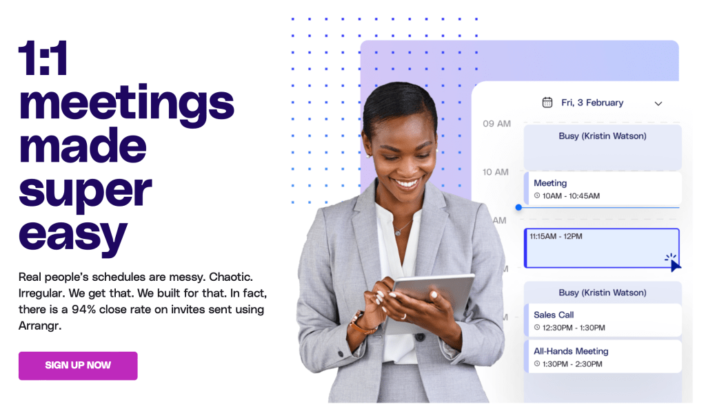 In today’s fast-paced, hyper-connected world, efficient time management is crucial. As professionals juggle multiple responsibilities, meetings, and deadlines, finding the perfect time to connect with others can become a daunting task. This is where Arrangr, a cutting-edge scheduling tool, steps in to alleviate the stress and streamline the process of managing one’s calendar. Specifically designed to simplify the scheduling of 1:1 meetings, Arrangr offers a proactive approach that sets it apart from traditional tools.